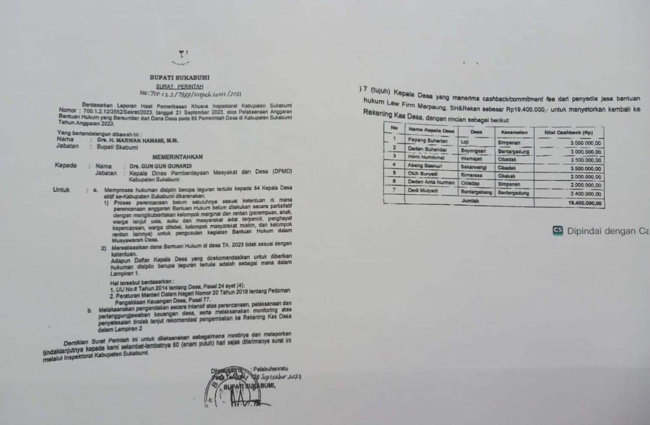 Bandung,|Journalmedianews.com- Perkembangan baru dalam kasus pendampingan hukum yang bergulir di PTUN Bandung 14/03/2024. Pasalnya laporan hasil pemeriksaan inspektorat(LHP) yg diserahkan oleh Kuasa Hukum tergugat Bupati Sukabumi sebagai bukti dalam menghadapi gugatan Law Firm Marpaung dan partner, dalam fakta di persidangan yang dijelaskan oleh Hodan Firmansyah,(Kabid Pemdes DPMD), ketika ditanya oleh kuasa hukum tergugat Bupati DR.Sepranaja. SH.MM” Apakah ada cash back”.Jawab,Hodan”,Tidak ada.Lanjut kuasa hukum Tergugat Bupati,”Apakah pemberian Cashback diperbolehkan,” jawab Hodan,” tidak boleh.”Hal senada juga dijelaskan oleh Deni ketua tim riksus inspektorat kabupaten Sukabumi, ketika menjawab pertanyaan kuasa hukum tergugat Bupati.DR.Sepranaja SH.MM.”Kata Deni,” Tidak ada cashback,dan CashBack”.