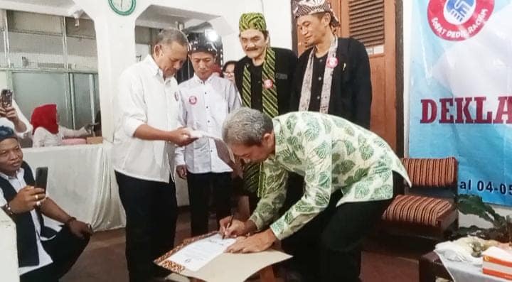 Kota Bogor|journalmedianews -Relawan Sodera ( Sobat Dedie A Rachim) melaksanakan Deklarasi dan Penandatanganan surat dukungan kepada Dedie A Rachim sebagai Calon Walikota Bogor Periode 2024-2029, Kegiatan berlangsung di Cafe Teras Jadoel Jln. RE. Martadinata Ciwaringin Kota Bogor, Sabtu (04/05/2024)