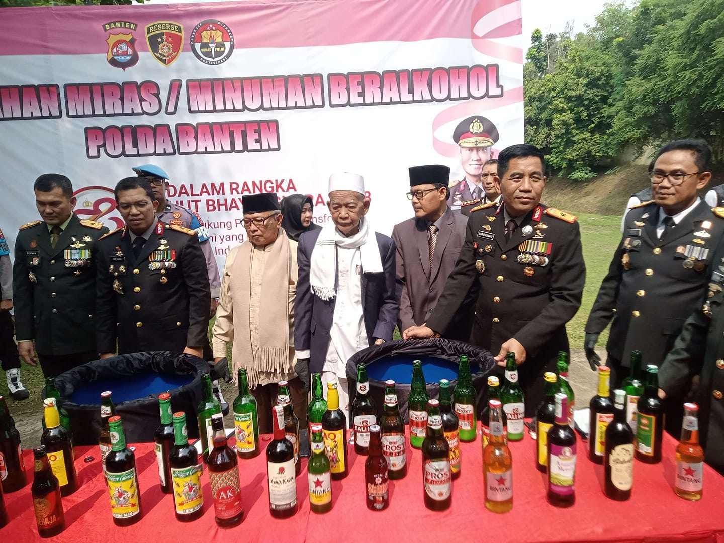 Banten-Kepolisian Daerah Banten memusnahkan 75.279 botol minuman keras dari 4.090 dus dengan berbagai merk. Puluhan ribu botol miras ini diamankan dari Kegiatan Rutin Yang Ditingkatkan (KRYD) periode April hingga Mei 2024.