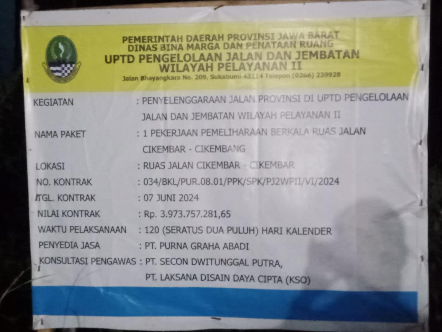 SUKABUMI.-UPTD pengelolaan jalan dan jembatan wilayah pelayanan II yang melaksanakan pekerjaan pemeliharaan ruas jalan Cikembar – Cikembang,Sukabumi – Jawa Barat, seolah ada oknum yang mencari keuntungan pribadi.