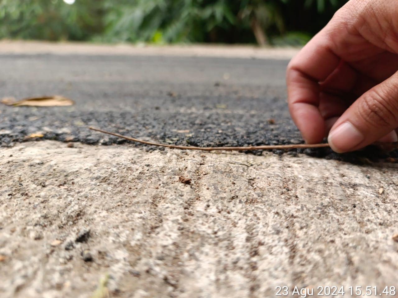Lebar jalan yang seharusnya 1 meter hanya direalisasikan 90 cm, bahkan ada beberapa bagian yang hanya berukuran 60 cm. Selain itu, ketebalan aspal yang tidak tertera dalam papan informasi, ketika diukur ternyata kurang dari 0,1 cm.