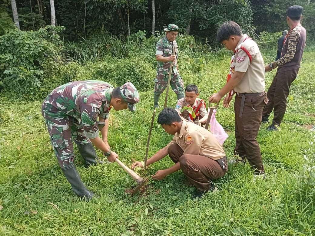 Pandeglang – Personil TNI dari Koramil 0103/Banjar Kodim 0601/Pandeglang melaksanakan kegiatan penanaman bibit Pohon Sukun di Desa Mekarjaya, Kecamatan Mekarjaya, Pandeglang, Banten, pada hari Jumat (15/11/2024). Kegiatan ini melibatkan siswa-siswi dari SMPN 3 Mekarjaya untuk menumbuhkan kesadaran mereka terhadap pentingnya menjaga kelestarian alam.