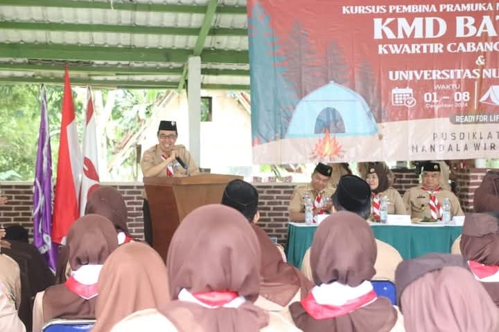 Sukabumi,01 Desember 2024 | Sekretaris Daerah Kabupaten Sukabumi, H. Ade Suryaman, menghadiri dan membuka Kursus Mahir Dasar (KMD) yang diselenggarakan oleh Universitas Nusaputra Sukabumi di BMC Kadudampit. Acara ini bertujuan untuk meningkatkan jumlah Pembina Pramuka sehingga rasio ideal antara jumlah anggota dewasa yang bertugas sebagai Pembina Pramuka dengan peserta didik dapat tercapai.