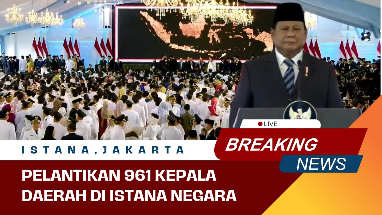 Jakarta,20 Februari 2025 | Presiden Prabowo Subianto resmi melantik 961 orang kepala daerah beserta para wakilnya. Pelantikan serentak ini pertama kali dilakukan dalam sejarah.