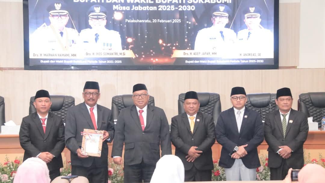 Sukabumi,21 Februari 2025 | Dewan Perwakilan Rakyat Daerah (DPRD) Kabupaten Sukabumi menggelar Rapat Paripurna Serah Terima Jabatan (Sertijab) Bupati dan Wakil Bupati Sukabumi masa jabatan 2021-2025 serta penyampaian pidato sambutan Bupati Sukabumi masa jabatan 2025-2030. Acara yang berlangsung khidmat ini digelar di Ruang Rapat DPRD Kabupaten Sukabumi, pada Kamis malam (20/2).