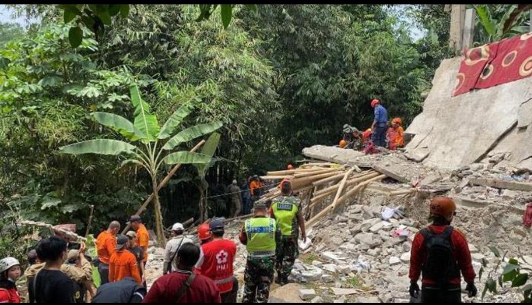 Hal serupa diungkapkan Rukoyah (65), yang saat itu juga berada di lokasi. “Baru mulai pengajian, terus marhabanan. Tiba-tiba ada suara ‘krek-krek’, lalu langsung ambruk,” katanya.