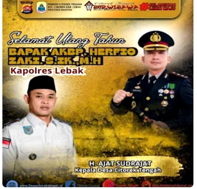 LEBAK — Ketua Asosiasi Pemerintah Desa Seluruh Indonesia (APDESI) Kabupaten Lebak, H. Ajat Sudrajat, bersama keluarga besar Media Online Infomasyarakat, menyampaikan ucapan selamat ulang tahun kepada AKBP Herfio Zaki S.I.K., M.H., Kapolres Lebak, yang merayakan hari kelahirannya ke-42 tahun.