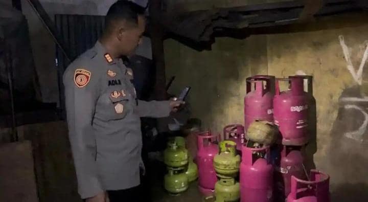 Namun, saat petugas tiba di lokasi, para terduga pelaku telah meninggalkan tempat. Di lokasi, polisi menemukan sejumlah barang bukti, antara lain tabung gas bersubsidi ukuran tiga kilogram, tabung gas non-subsidi berwarna merah muda, serta satu unit mobil pick-up berwarna merah berlogo Pertamina.